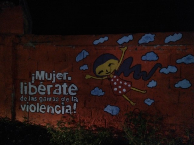 Hoy desde el bus yendo a la playa vi un mural enorme en la pared del aeropuerto en contra de la violencia de género.